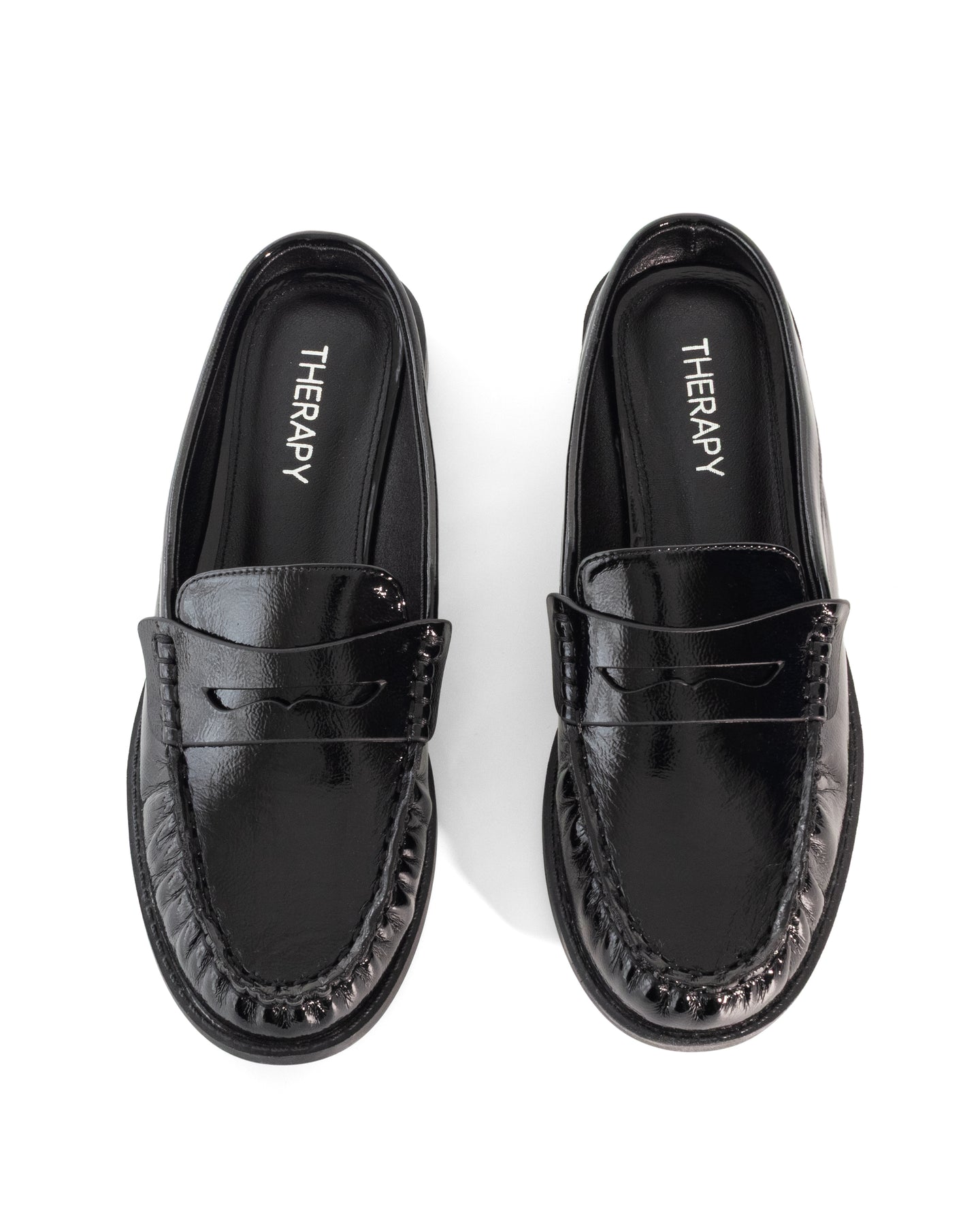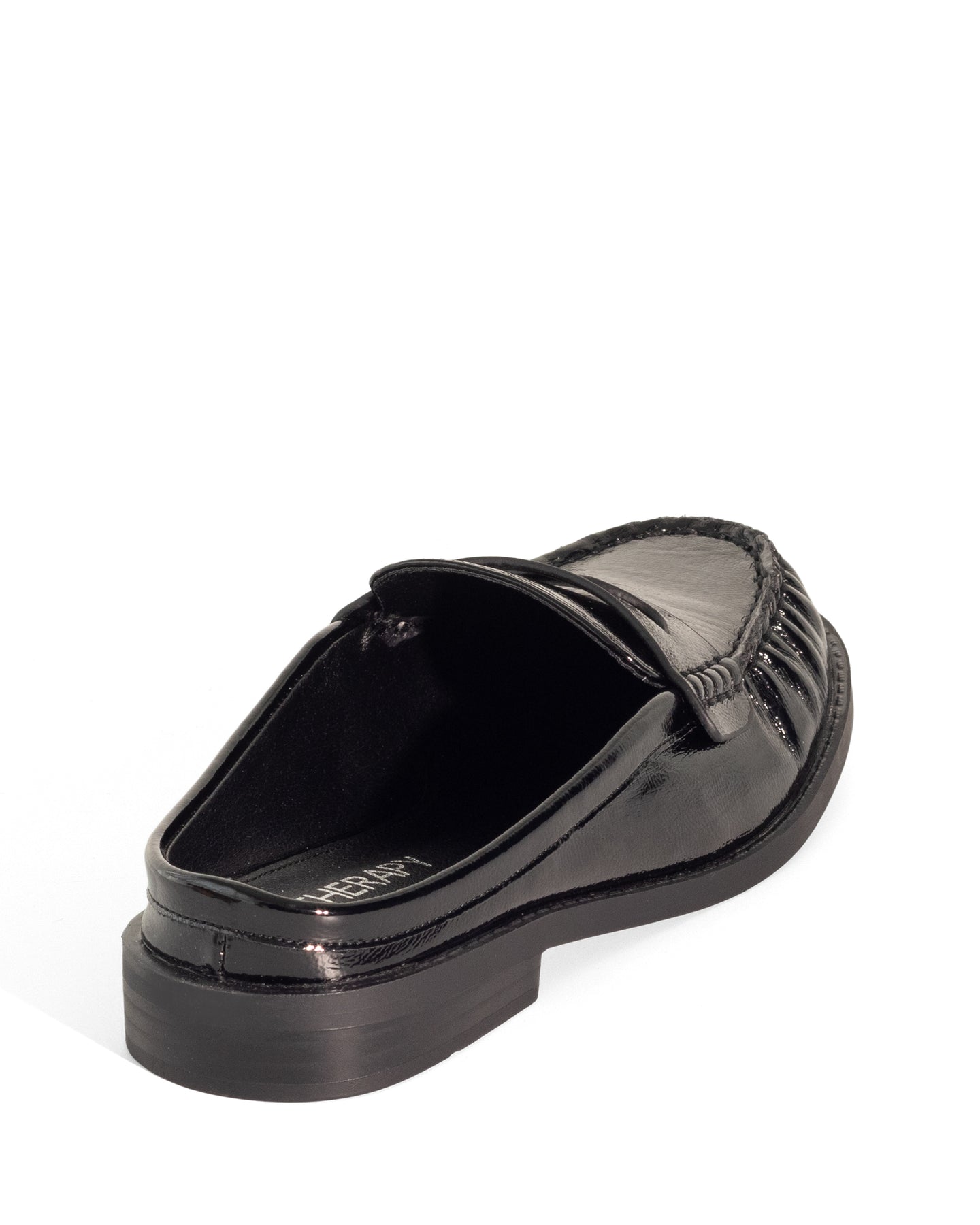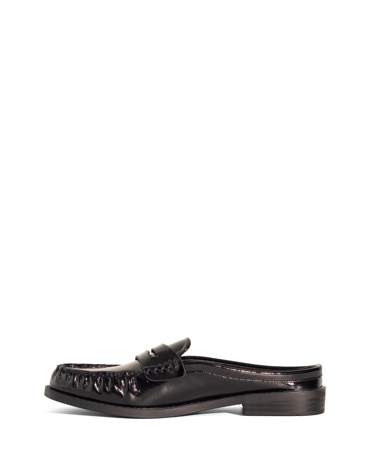 Atticus Loafer Mule Black Crinkled Patent
