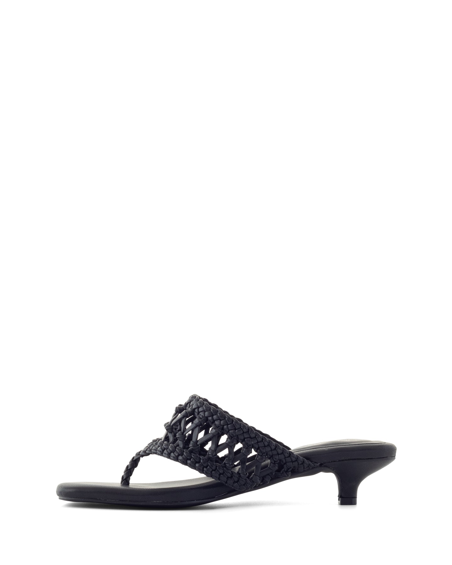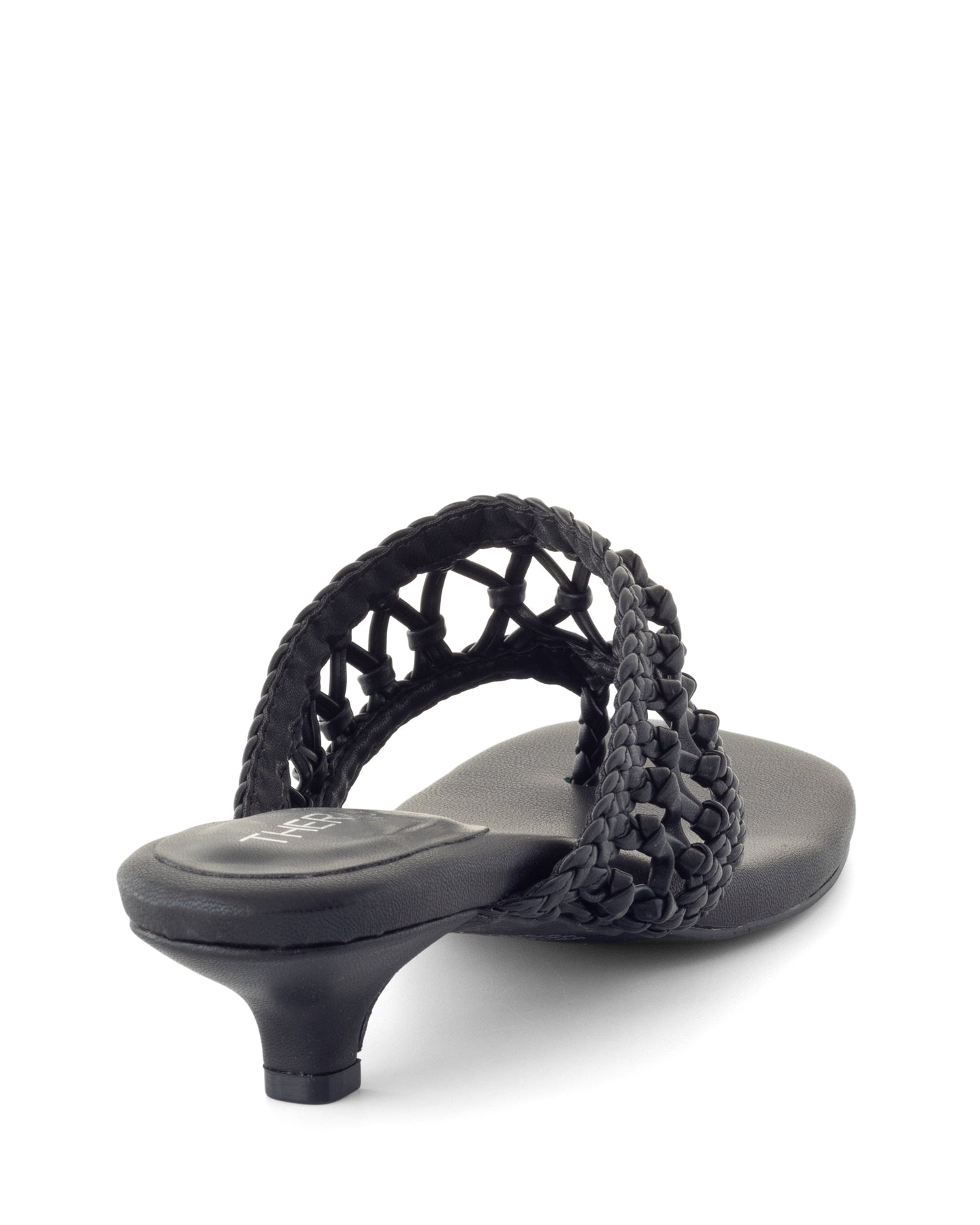 The Cannes Thong Heel by Therapy brings a modern twist to a classic thong silhouette. Featuring intricate woven upper straps and a sleek square footbed, this style blends texture with a clean, structured profile. The low block heel adds subtle height while keeping the design refined and versatile.