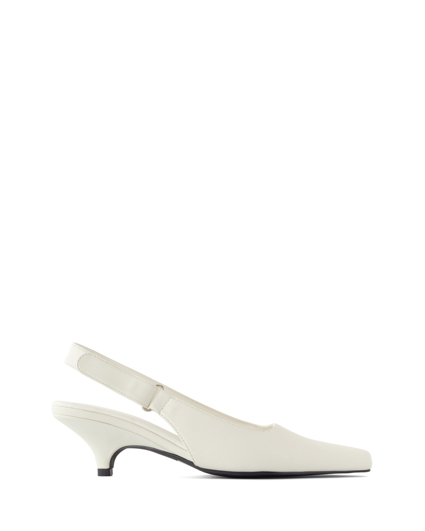 Say hello to Newark - the slingback pump that makes every outfit feel intentional. With a pointed toe, low kitten heel and square topline, she’s clean, modern and just a little bit French. The velcro heel strap keeps the fit easy and secure - no fuss, just effortless good taste. Wear her with tailored pants, mini skirts, tailored shorts - Newark handles it all!