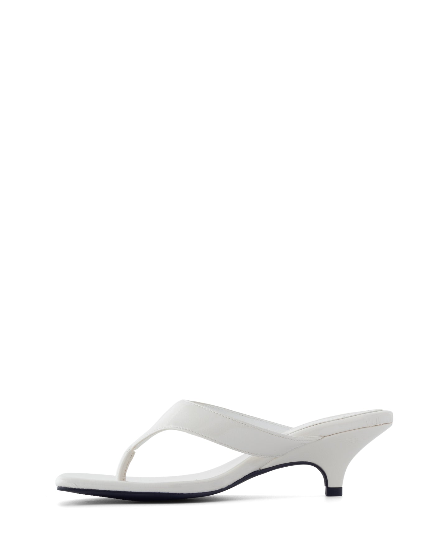 The North by Therapy is a sleek and modern take on the classic thong heel. With its crinkle patent upper, sharp square toe, and minimal design, it offers a clean and elegant look. The low kitten heel provides a subtle lift and a refined silhouette. It’s an ideal choice for brunch, weekend outings, beachside dinners, or any occasion where you want a polished yet relaxed look.