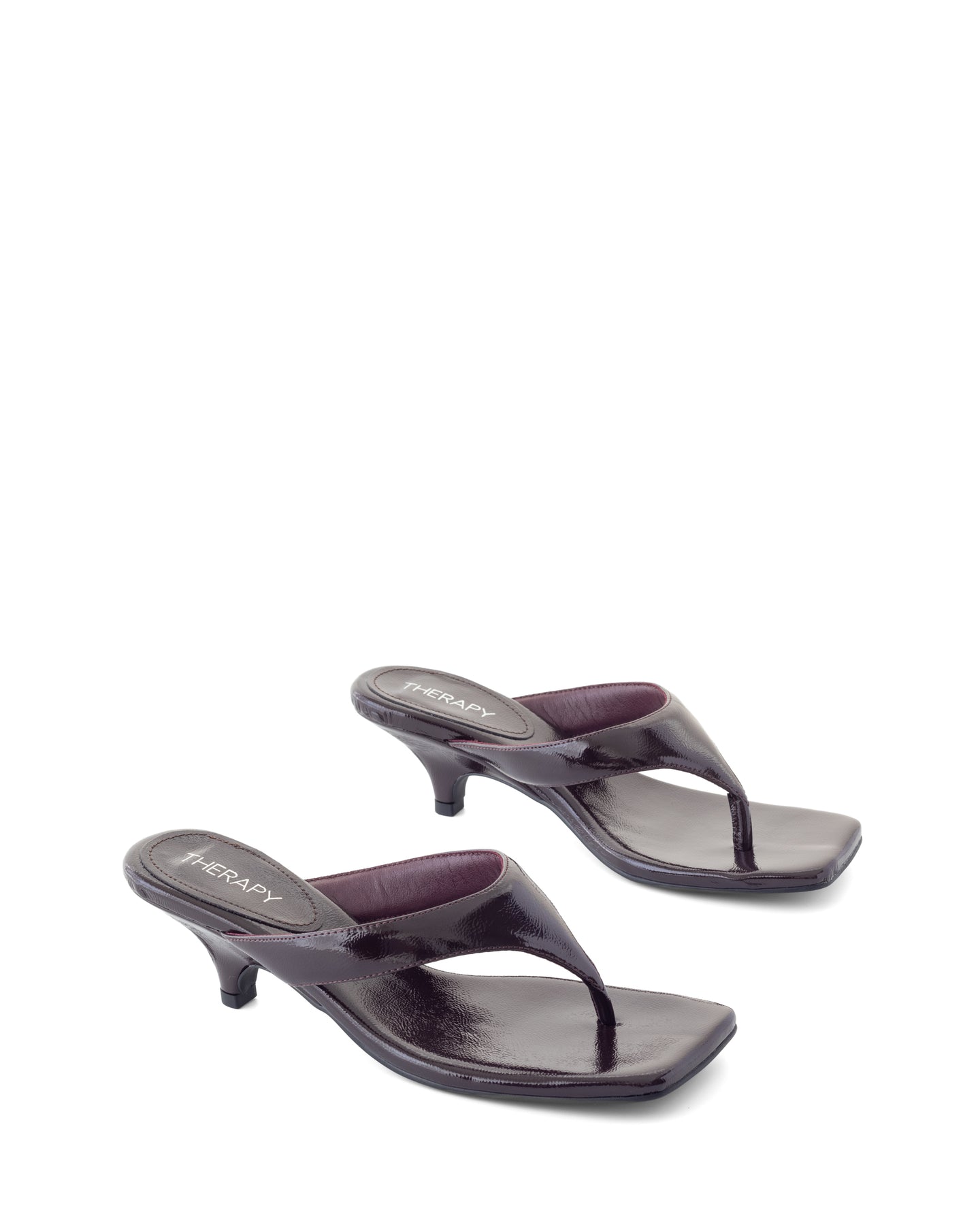 The North by Therapy is a sleek and modern take on the classic thong heel. With its crinkle patent upper, sharp square toe, and minimal design, it offers a clean and elegant look. The low kitten heel provides a subtle lift and a refined silhouette. It’s an ideal choice for brunch, weekend outings, beachside dinners, or any occasion where you want a polished yet relaxed look.
