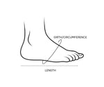 The width measurement shows the full fit around your foot — it’s taken as a circumference across the widest part, not just flat across.