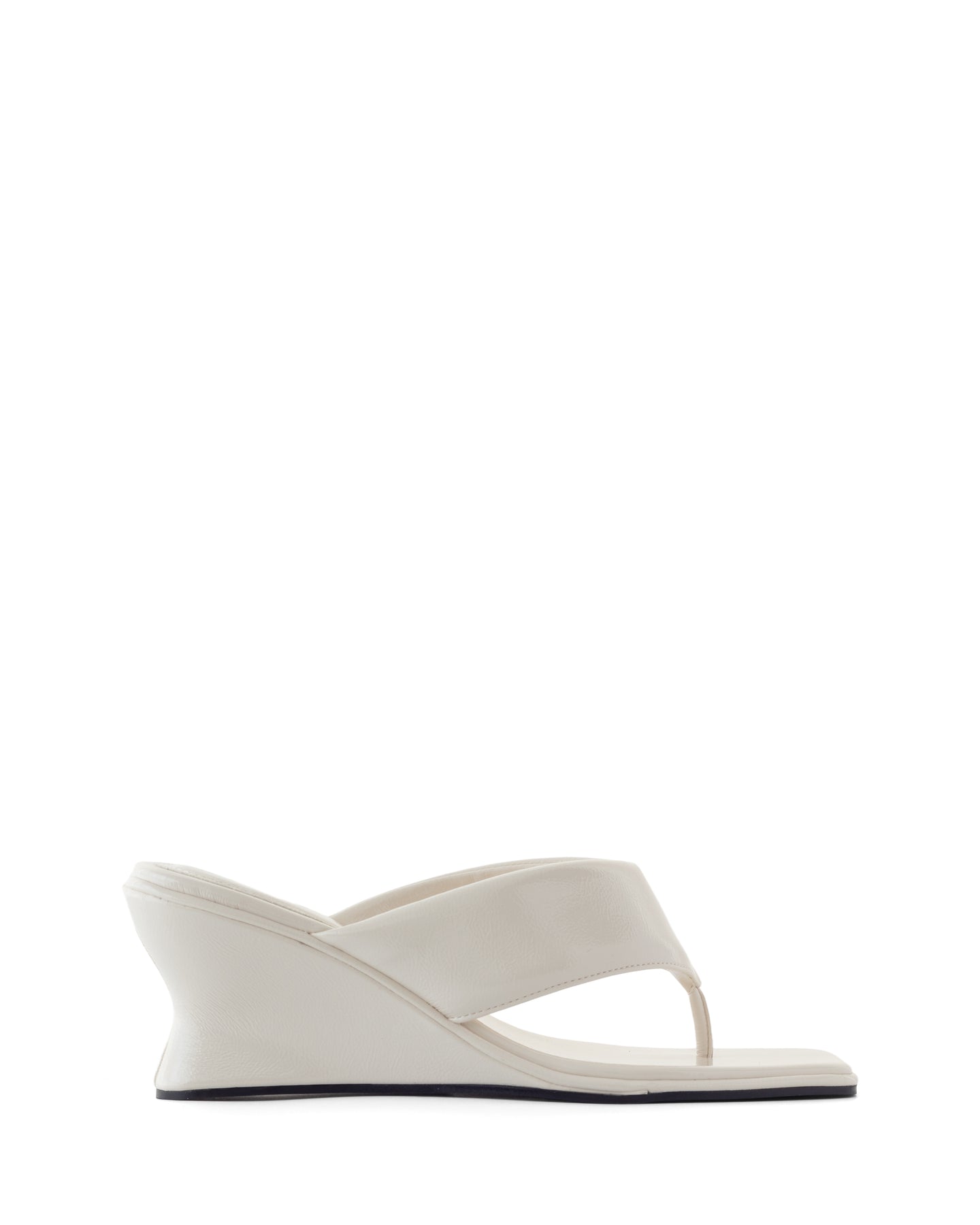Step into sleek sophistication with the Lennox Wedge Thong. Designed with a glossy patent finish and sculptural wedge heel, this modern silhouette elevates any warm-weather wardrobe. The wide upper strap and square toe create a bold, fashion-forward look perfect for summer days, weekend outings, or evening events where minimal effort meets maximum style.